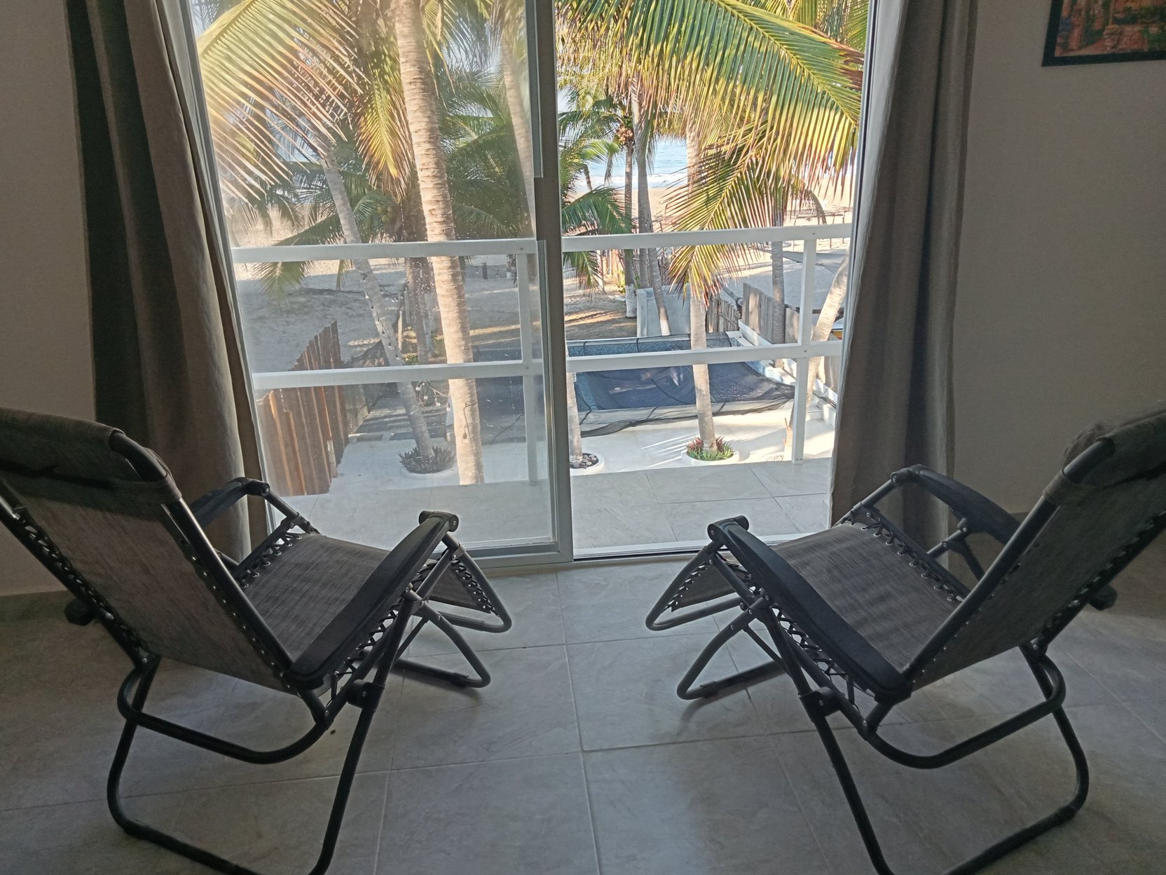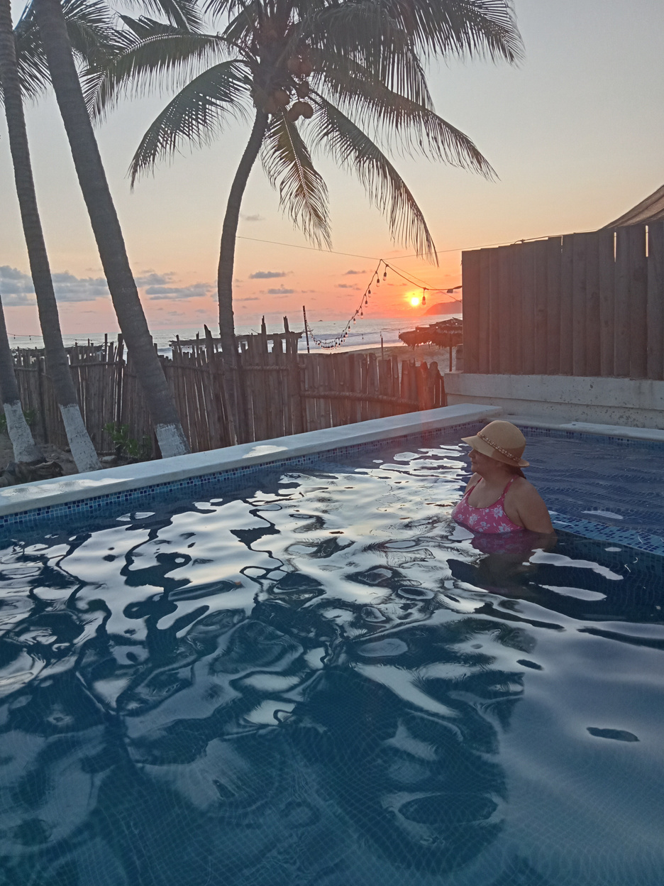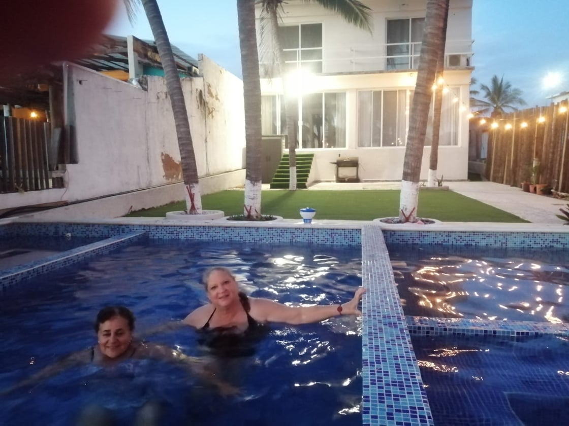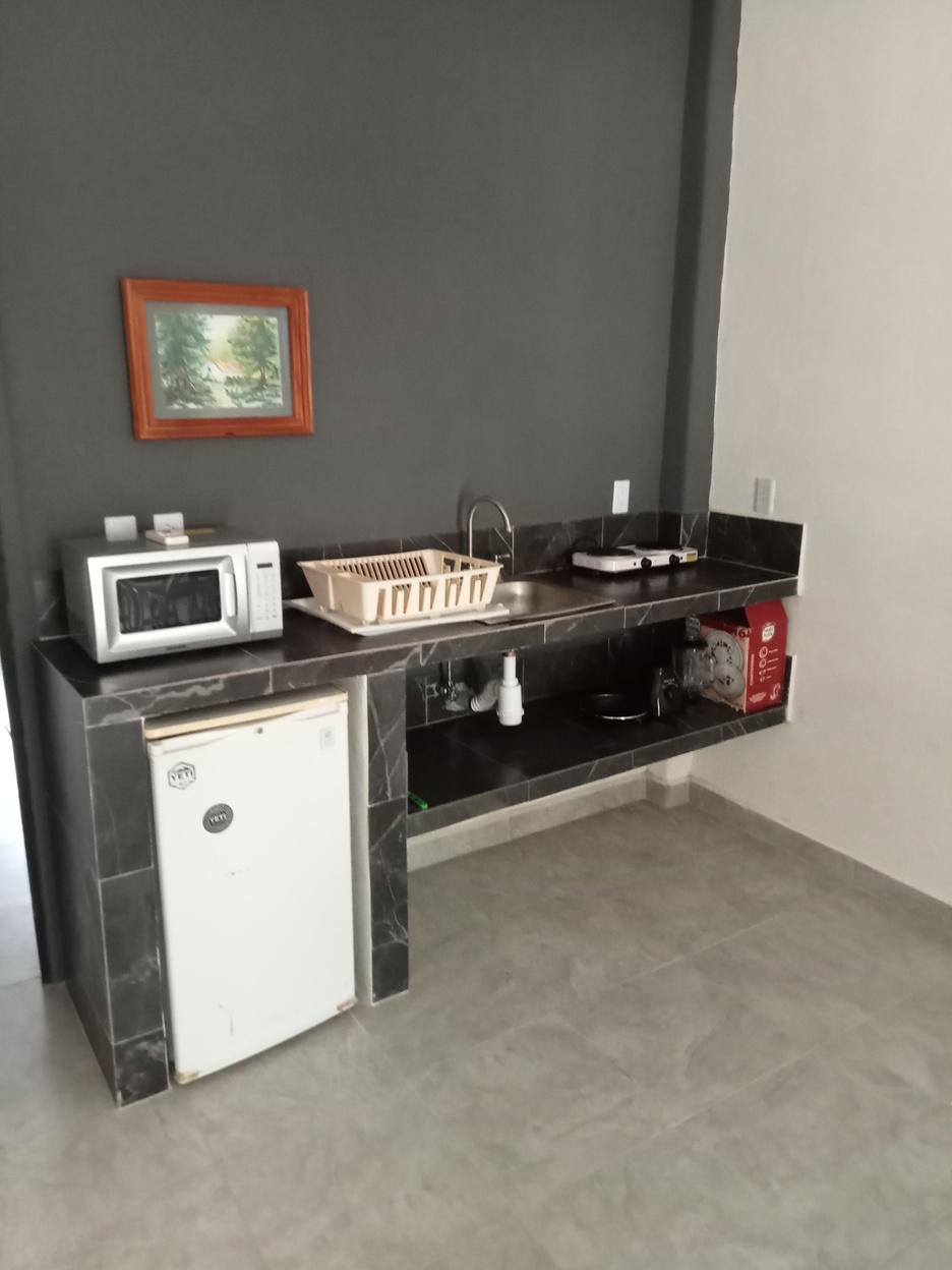 Junto al mar con una recamara con 2 camas matrimoniales cocina , sala comedor